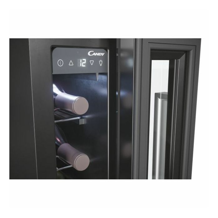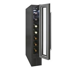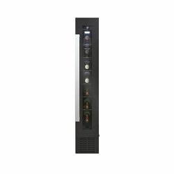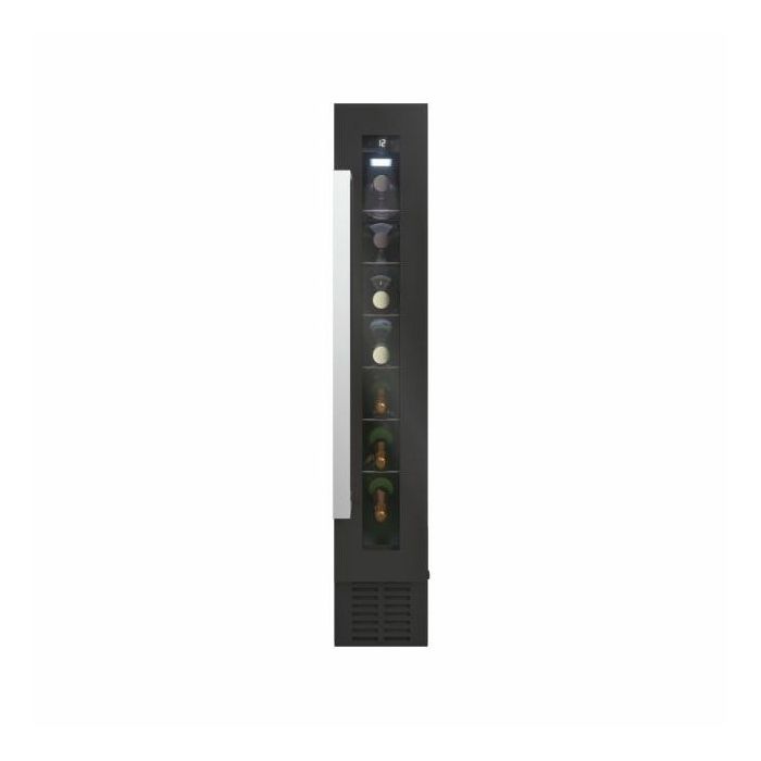 Broj standardnih boca vina: 7 Tehnologija hlađenja: ventilacijski Rasvjeta: LED Upravljanje: digitalno Broj temperaturnih zona: 1 Boja uređaja: crna Promjena smjera otvaranja vrata Šarka na vratima sa desne strane Broj polica: 6 Razred energetske učinkovitosti: G Godišnja potrošnja energije (kWh/god): 133 Razred emisije buke koja se prenosi zrakom: C Emisija buke koja se prenosi zrakom (dBA): 39 Klimatski razred: N Visina (mm): 865 Širina (mm): 145 Dubina (mm): 475 Neto težina (kg): 19 Bruto težina (kg): 20,54