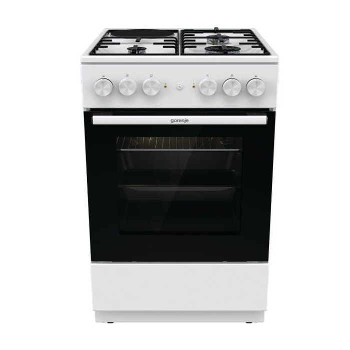 Essential Line Energetski razred: A Boja: bijela Tip ploče za kuhanje: kombinirana Materijal upravljačke ploče: lakirani metal Materijal vrata: staklo Bez poklopca Iskoristivi obujam pećnice: 68 l Dvoručno električno paljenje plinskih plamenika Zona za kuhanje sprijeda lijevo - Mali plamenik - O lijevo sprijeda (mm): 54 Zona za kuhanje sprijeda desno - Veliki plamenik - O desno sprijeda (mm): 99 Zona za kuhanje straga lijevo - Brzogrijuća ploča - O lijevo straga (mm): 180 Zona za kuhanje straga desno - Srednji plinski plamenik - O desno straga (mm): 74 Izvedba nosivih rešetki: emajlirana Osvjetljenje pećnice: iza Rebraste vodilice 1 duboka emajlirana posuda za pečenje Rešetka pećnice Dvostruka vrata pećnice s 1-strukom temperaturnom refleksijom Širina proizvoda: 500 mm Visina proizvoda: 850 mm Dubina proizvoda: 594 mm Neto težina proizvoda: 35.8 kg