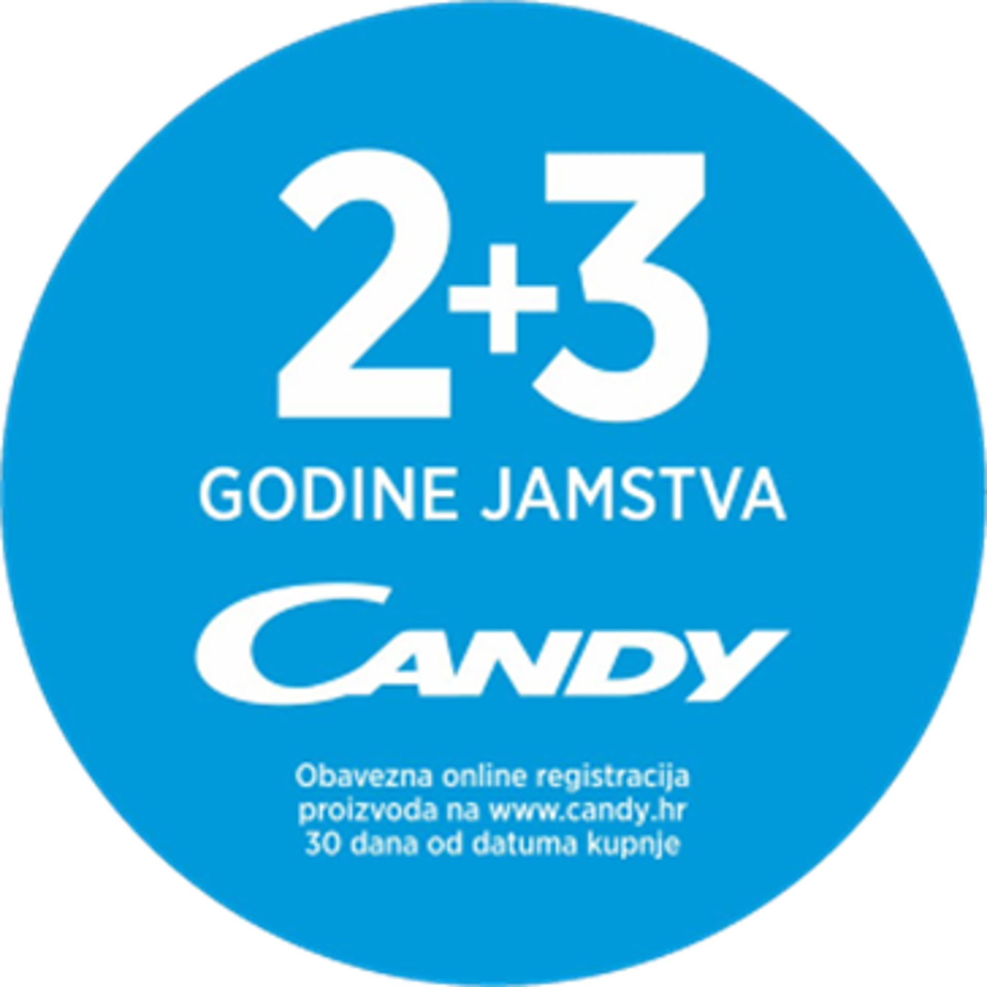 2 godine potpune + 3 godine dodatne potpune garancije vrijedi za sve CANDY ugradbene uređaje te hladnjake, ledenice/škrinje, perilice posuđa, sušilice rublja i perilice rublja s prednjim punjenjem, kupljene u periodu od 01.08.2023. do 31.12.2023., uz OBAVEZNU online registraciju za produženje garancije.