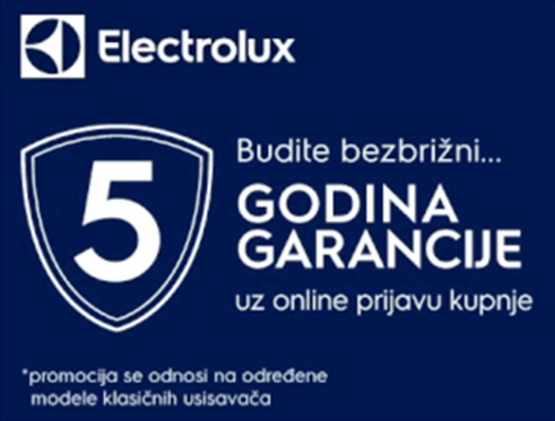Ukoliko ste kupili Electrolux usisavač naveden u ovoj promociji, u razdoblju od 01.02.2024. do 31.12.2024., možete ostvariti 5 godina garancije (2 godine redovne + 3 godine dodatne garancije) na proizvod uz online prijavu kupnje.