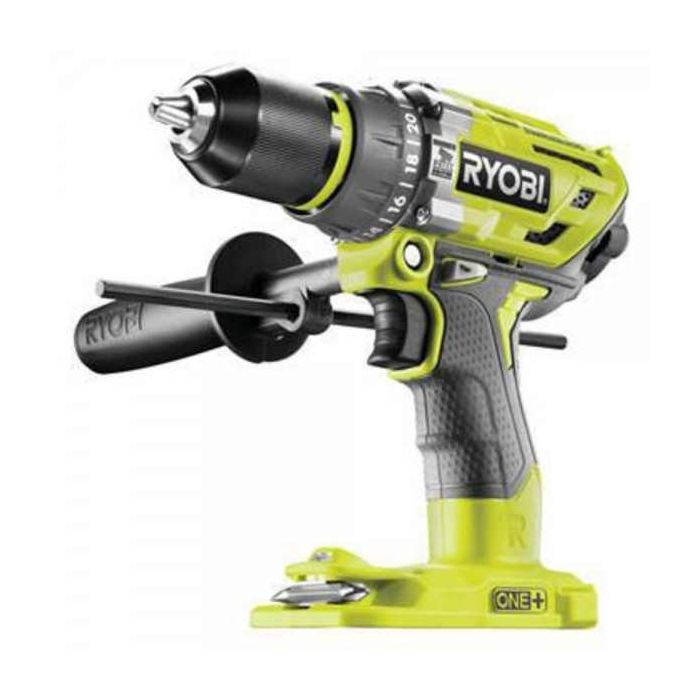 Ryobi R18PD7-0 Akumulatorska udarna bušilica-odvijač 18V ONE+ BL motor Glava 13 mm, 2 brzine 0-410 / 0-1800/min Max. okretni moment 85 Nm Max. bušenje u drvu 54 mm, u metalu 13 mm, u zidu 13 mm LED svjetlo Bočna ručka Masa 1,7 kg