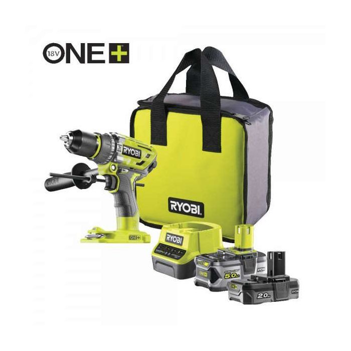 Ryobi R18PD7-252S Akumulatorska udarna bušilica-odvijač 18V ONE+ BL motor Glava 13 mm 2 brzine 0-410 / 0-1800/min Max. okretni moment 85 Nm LED svjetlo Bočna ručka Masa 1,7 kg 1 x akumulator 5Ah 1 x akumulator 2Ah Punjač Meka torba