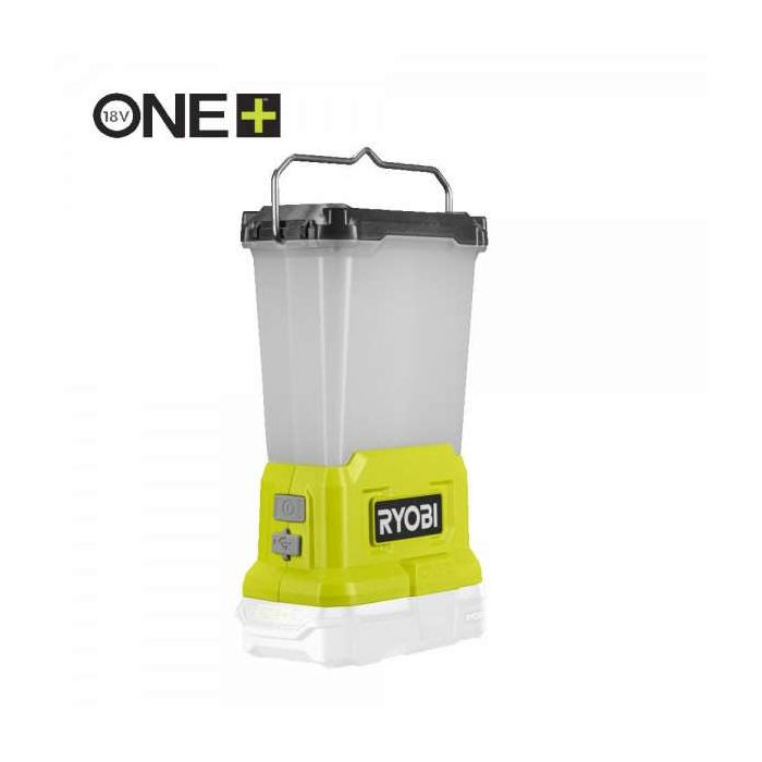 Ryobi RLL18-0 Akumulatorska kamperska svjetiljka 18V ONE+ 850 lumena, svijetli 360° 3 snage svjetljenja USB utičnica Masa 0,5 kg Baterija se kupuje zasebno