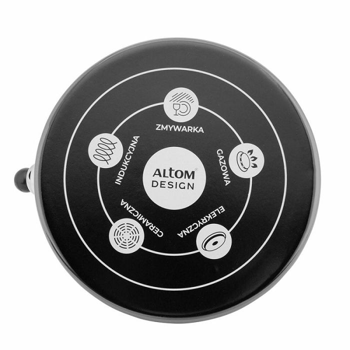 Zapremnina 2,5 l Promjer 23 cm Visina 21 cm Kuhalo za vodu postat će pouzdan pomagač u svakom domu. Izrađeno od visokokvalitetnog ugljičnog čelika osigurava trajnost. Premaz s dva sloja emajla, iznutra i izvana, osigurava sigurnost i otpornost na oštećenja. Udobna bakelitna ručka jamči siguran hvat. Poklopac koji se otvara olakšava ulijevanje vode. Zviždaljka obavještava o kipućoj vodi.