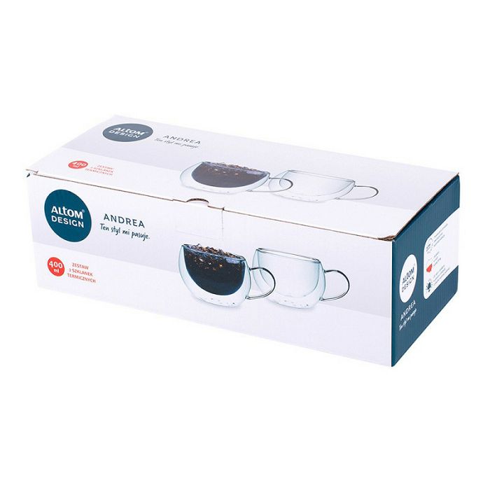 Čaše s dvostrukim stijenkama s termo dnom Altom Design Andrea 400 ml (set od 2 čaše) Termo staklo dizajnerski je hit u kuhinjskom aranžmanu Dimenzije - set 2: kapacitet - 400 mlširina - 12,5 cmvisina - 10 cm