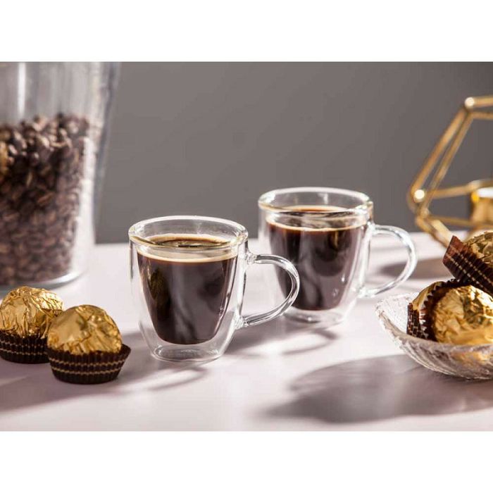 Čaše s dvostrukim stijenkama s termo dnom Altom Design Andrea 80 ml (set od 2 čaše) Termo staklo dizajnerski je hit u kuhinjskom aranžmanu Dimenzije - set 2 komada kapacitet: 80 ml promjer: 9 cm visina: 7 cm
