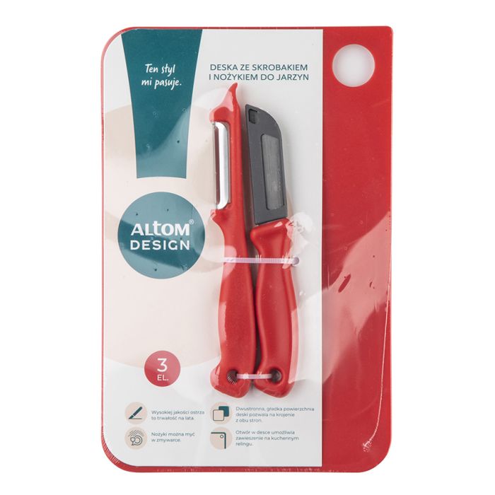 · Set je izrađen od izrađena od izdržljive i jednostavne plastike. · Daska za rezanje ima pravu tvrdoću i trajnost · Izrađena od kvalitetne plastike osigurava higijenske radne uvjete. · Daska ne upija mirise. · Lako se čisti. · Nož, koji je dio seta, je. Kompaktan i oštar, idealno za precizno rezanje i sjeckanje. · Zahvaljujući strugaču Nepotrebni slojevi ili prljavština mogu se brzo ukloniti sa različitih proizvoda. · Multifunkcionalnost seta ga čini praktičan alat u kuhinji. 1 x Daska za rezanje: duljina - 24 cm, širina - 16 cm 1 x Rezač povrća: Duljina - 6 cm 1 x Strugač: Duljina - 6cm