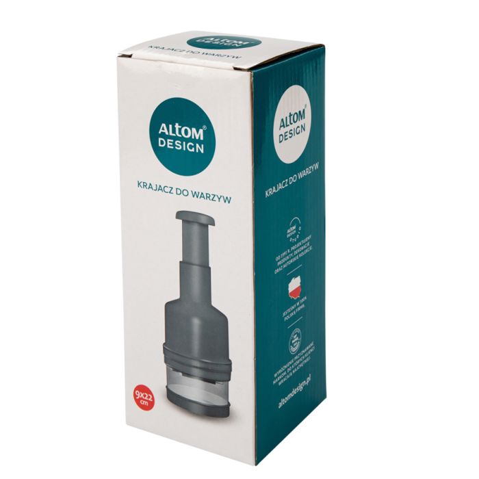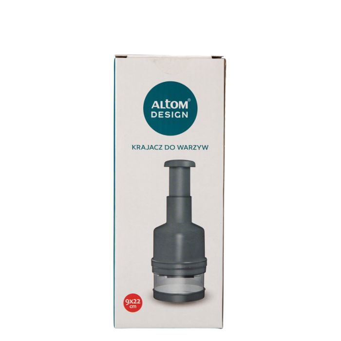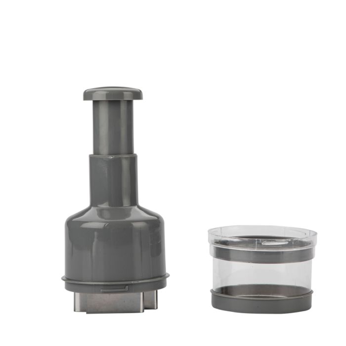 Idealno za brzo i precizno sjeckanje luka i drugog povrća Dimenzija rezača: visina - 22 cm promjer - 8 cm visina spremnika - 6 cm