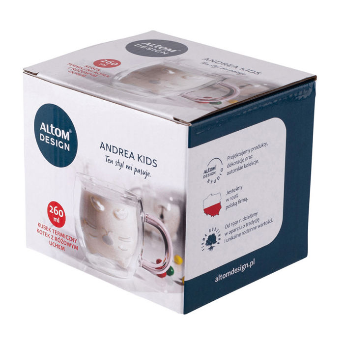 ANDREA KIDS TERMALNA ŠALICA 260ML S RUŽIČASTIM DEKOROM UHOM, MAČIĆ (KUTIJA U BOJI)