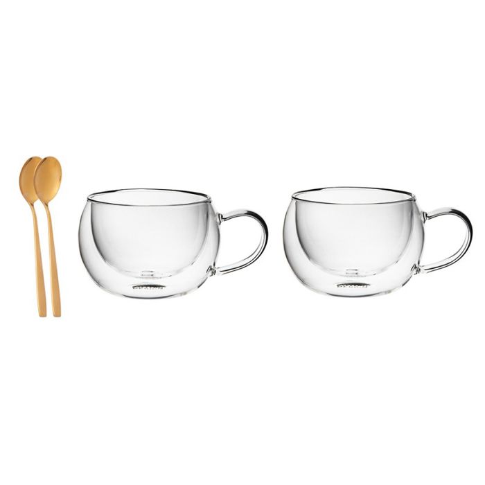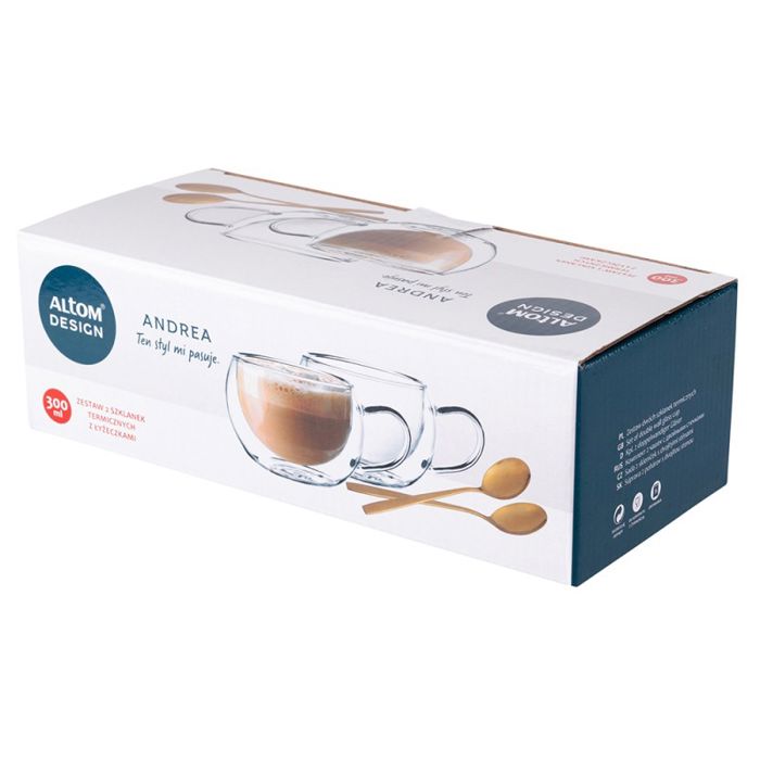 Čaše s dvostrukim stijenkama s termo dnom Altom Design Andrea 300 ml (set od 2 čaše + žličice) Termo staklo dizajnerski je hit u kuhinjskom aranžmanu