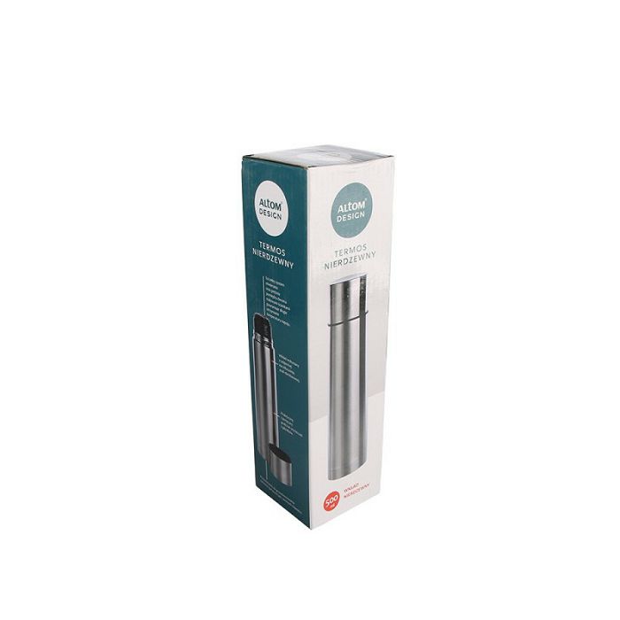 Termos boca od nehrđajućeg čelika savršena za svako godišnje doba. Siguran i učinkovit transport i čuvanje toplog napitka u bilo kojoj situaciji Dimenzije termos boce:- kapacitet: 500 ml,- visina: 26 cm