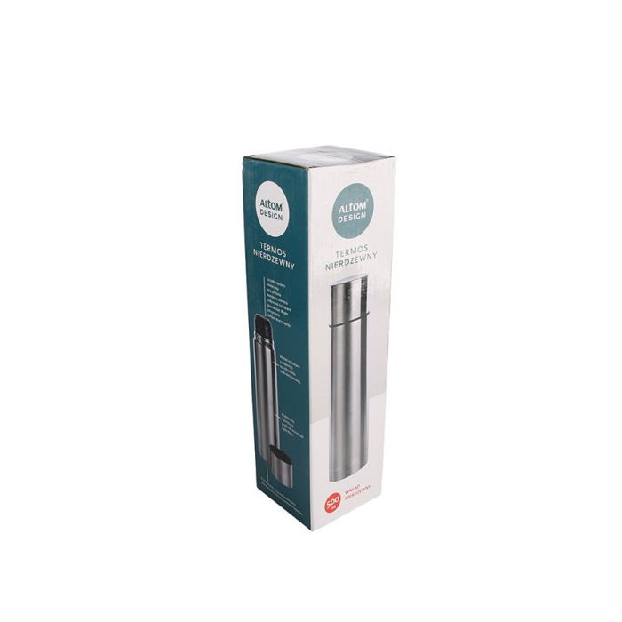 Termos boca od nehrđajućeg čelika savršena za svako godišnje doba. Siguran i učinkovit transport i čuvanje toplog napitka u bilo kojoj situaciji Dimenzije termos boce:- kapacitet: 500 ml,- visina: 26 cm