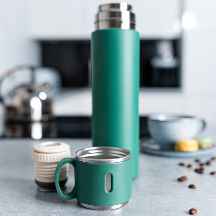 Termos boca sa poklopcem u obliku čaše, idealan za putovanja i rad. Topli napitak uvijek pri ruci? Da, sada je to moguće sa širokim rasponom termosica dostupnih u našoj trgovini. Termosice od nehrđajućeg čelika osigurat će pravu temperaturu kave ili čaja u svakoj situaciji. Nemojte više čekati i uvijek uživajte u okusu aromatične kave ili čaja tijekom putovanja ili kampiranja. termos Izrađena je od nehrđajućeg čelika otpornog na razbijanje i zaštićen crnim zaštitnim premazom Zamjena staklenog umetka nehrđajućim čelikom čini Termos boca je izuzetno izdržljiva Termos ima Sustav zatvaranja i otvaranja otporan na curenje. Vakuum između dva čelična zida jamči da se temperatura pića održava do 12 sati Dizajniran je za pohranu toplih i hladnih napitaka. Lagan i udoban da se nosi. 150 ml čep u obliku čaše Visina : 27 CM Širina : 8 CM