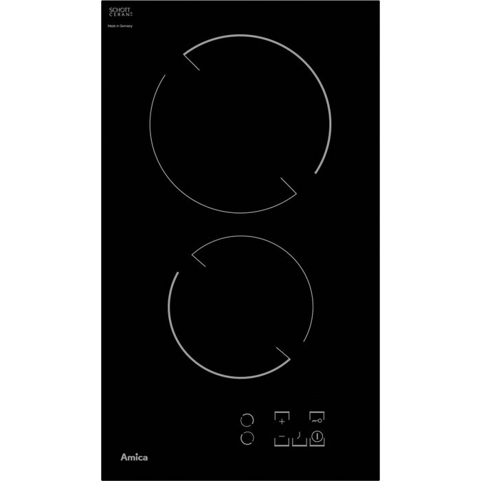 Amica domino staklokeramička ploča sa kontrolama na dodir; 2 zone za kuhanje Dodatno: C-cut, 9 temperaturnih levela, indikator zaostale topline, automatsko zaključavanje, timer Ploča: - zona sa boosterom 14,5 cm (1,2 kW); - zona sa boosterom 18,0 cm (1,8 kW); Dimenzije: 55 x 300 x 520 mm; bez okvira