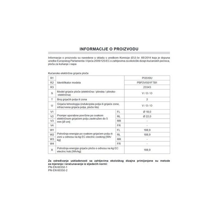 2 indukcijski zagrijane površine Dimenzije ploča: 1 x Ø 18 cm, 1 x Ø 22 cm + booster Timer/minutni podsjetnik Način upravljanja: dodir Broj stupnjeva: 9 Pro Baby System – sigurnosna postavka za djecu Automatsko otkrivanje veličine posude Pokazatelj preostale topline, održavanje topline Boja: crna Snaga: 3,7 kW Dimenzije: 30×52×4,8 cm