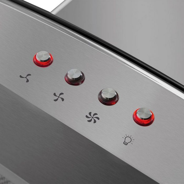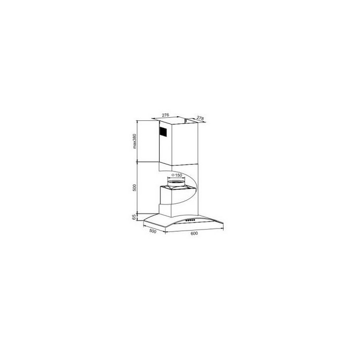 Kaminska napa, 4 brzine 2 LED svjetla (2X1,5W) Glasnoća pri max brzini: 66 dB; Dimenzije (mm): 655 x 425 x 565 1 aluminijski filter za masnoću; Boja: aluminij Max snaga izvlačenja: 455m3/h;