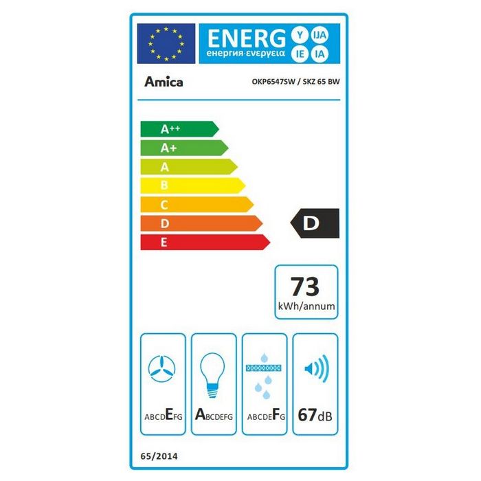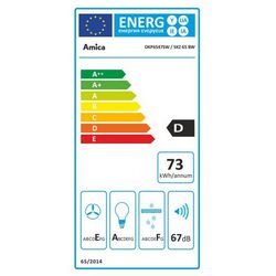 Amica kaminska napa 60 cm; inox, staklo 2 x 3,5W, LED svjetla, 3 Brzine; sensor control system Snaga izvlačenja: 336 (m³/h); Glasnoća pri max brzini: 63 db; 1 aluminijski filter za masnoću; Boja: bijela