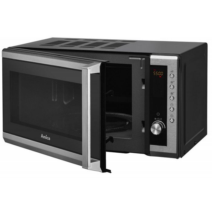 kapacitet 20 litara Mikrovalna snaga 700 W kontroliranje elektronički Osnovne funkcije grijanje, odmrzavanje Način otvaranja vrata sa strane - lijevo Mikrovalni distribucijski sustav prostorni Dodatne funkcije 5 razina snage, 8 automatskih programa, roditeljsko zaključavanje, vremensko odmrzavanje, gubitak težine, zvuk na kraju rada, brzi početak, timer, LCD zaslon, sat Promjer okretne ploče 24,5 cm boja crne i srebrne FIZIČKI PARAMETRI Dimenzije (širina x visina x dubina) 45,2 x 26,2 x 35,1 cm Dimenzije paketa 50 x 40 x 30 cm Težina pakiranja 11 kg