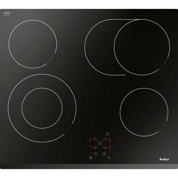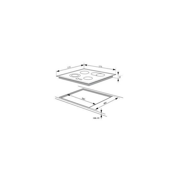 Staklokeramička ploča sa kontrolama na dodir;4 zone za kuhanje;Integrirani senzor upravljačke ploče; Timer; Alarm;Indikator zaostale topline zone za kuhanje;Sistem za automatsko vrenje; Zaključavanje ploče;Ploča:električna isijavajuća zona 14.5 cm (1.2kW)električna isijavajuća zona 14.5 cm (1.2kW)dvostruka električna isijavajuća zona 12/21 cm (0.75/2.2kW)ovalna električna isijavajuća zona 17/17 x 26.5 cm (1.4/2.2kW)Dimenzije (cm): 56 x 49 ; Z okvir