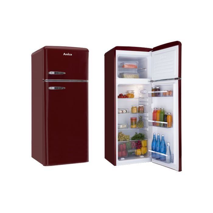Amica kombinirani hladnjak Ukupni kapacitet: 210 l; Netto kapacitet hladnjaka: 164 l; Netto kapacitet zamrzivača: 44 l; Energetski razred: A++; Kapacitet zamrzavanja: 2,5 kg/24h; Pohrana namirnica kod nestanka struje: 12 sati; Godišnja potrošnja: 172 kWh; Razina buke: 40 dB; Broj vrata - 2 / Broj polica u hladnjaku - 3 / Broj ladica u zamrzivaču - 2 / Automatsko odleđivanje / Držač jaja / Ladica za voće i povrće Dimenzije: 144 x 55 x 61,5 cm