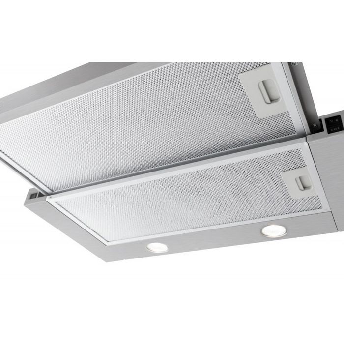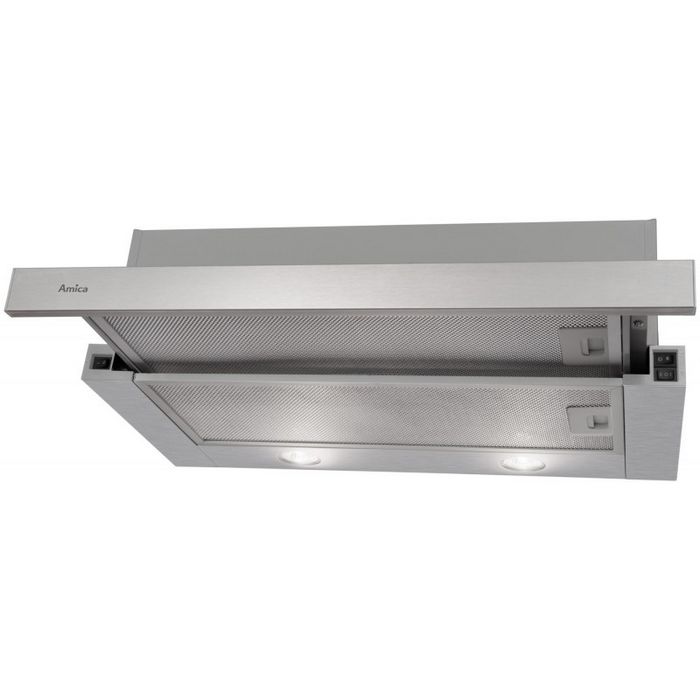Amica teleskopska napa 60 cm;2 LED svjetla (4W);3 brzine;1 motor;Snaga izvlačenja: 350 (m3/h);Glasnoća pri max brzini: 65 db;2 aluminijska filtera za masnoću;Boja: inox