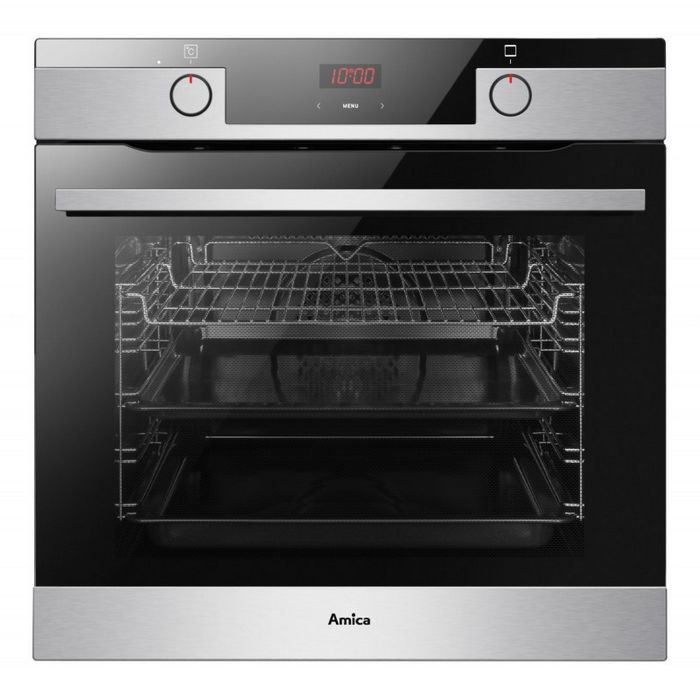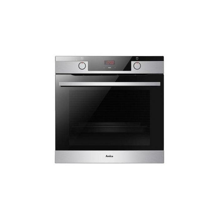 Amica ugradbena pećnica; Električna pećnica sa 11 funkcija; Programmer type Ts; Dodaci: Display, konvekcija, brzo zagrijavanje, odmrzavanje, broj plehova 2, sistem lakog čišćenja vrata, broj stakala na vratima 3, reflektirajuće staklo, Grill, ventilator, turbo roštilj, pizza program, push pull nonstick tray structure, svjetleći push pull gumbi za upravljanje, I -touch Kapacitet pećnice: 77 l; Energetski razred: A; Dimenzije: 595 x 595 x 575 mm; Boja: inox