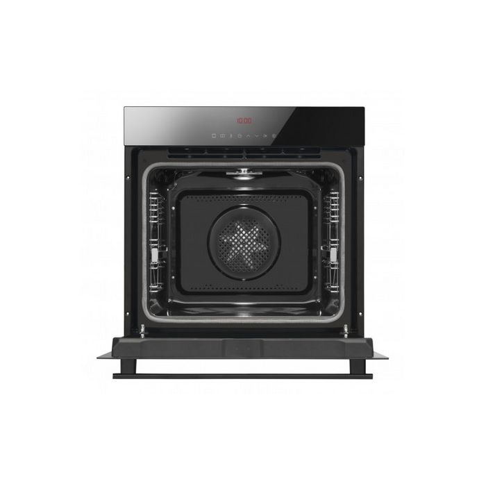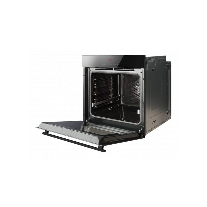 Amica ugradbena pećnica; Električna pećnica sa 12 funkcija; 19 programa za pečenje, Child lock, Programmer type Mc; Dodaci: Display, konvekcija, brzo zagrijavanje, odmrzavanje, broj plehova 2, sistem lakog čišćenja vrata, broj stakala na vratima 4, reflektirajuće staklo, Grill, ventilator, turbo roštilj, pizza program, nonstick tray structure, soft close, gumbi za upravljanje,I-Cool front (43C) , teleskopske vodilice na jednoj razini, pirolitičko čišćenje 490°C, top heat Kapacitet pećnice: 77 l; Energetski razred: A; Dimenzije: 595 x 595 x 575 mm; Boja: crna