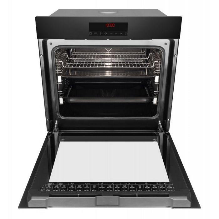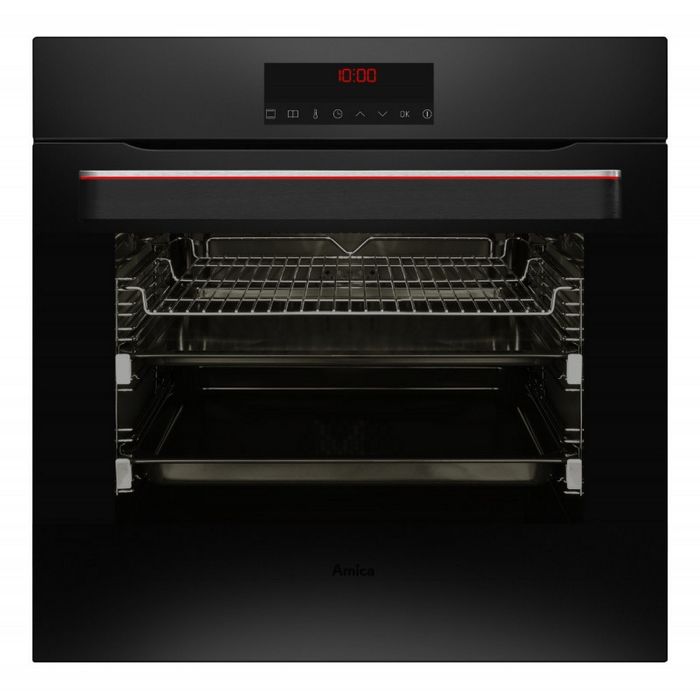 Visina 59,5 cm Širina 59,5 cm Dubina je 57,5 cm Boja mat crna A + energetska klasa Kapacitet pećnice 77 l Ukupna snaga 3,6 kW Gornji grijač od 900 W Donji grijač od 1100 W Prstenasti grijač od 2100 W 1500 W električni roštilj Vrsta pećnice: električna Broj funkcija pećnice: 11 Broj unaprijed postavljenih programa: 19 Predgrijavanje za 3 minute. Amica BakingPro System ® Čak i pečenje na nekoliko razina Tci programer Bočne vodilice Teleskopske vodilice sa funkcijom STOP Čišćenje pećnice: katalitičko Jednostavno čišćenje cakline Lako rastavljanje vrata Zatamnjena stakla Hladna prednja strana (3 stakla) Reflektirajuće staklo SoftClose Osvijetljena ručka WiFi - upravljanje pametnim telefonom Ljestve za sušenje Zatvorena gornja šipka vrata SoftLight Gornja halogena rasvjeta Zaključavanje programera Recepti na vratima Širok raspon temperatura: 30 ° C - 280 ° C