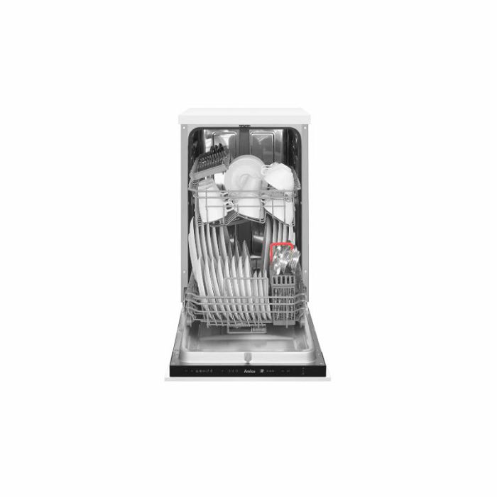 odgoda uključivanja 3/6/9 sati indikator soli i sredstva za ispiranje elektroničko upravljanje LED prikaz programa kada od nehrđajućeg čelika Energetski razred E Potrošnja električne energije 70 kWh Potrošnja vode 9 godina Broj podmetača 9 Broj programa 5 Broj košara 2 + košara za pribor Glasnoća 49 dB Dimenzije (V x Š x D) 81,5 × 44,8 × 55 cm