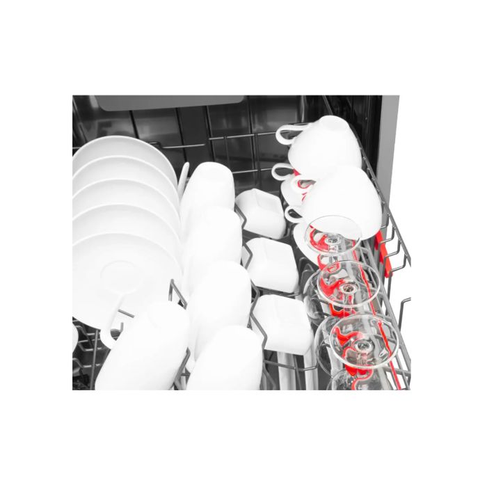 Plava dioda BlueDot+ prikazuje svjetlosne poruke o radu Treća košara za pribor za jelo s podesivom površinom za dodatni prostor Gornja košara može se lako pomicati gore-dolje OptiTime vam omogućuje optimizaciju vremena pranja AquaStop poseban ventil koji automatski prekida dovod vode u slučaju kvara EcoBar jasan indikator koji informira o potrošnji energije i vode Funkcija Add+ omogućuje sigurno dodavanje zaboravljenog spremnika tijekom ciklusa Antibakterijski filter uklanja patogene i smanjuje neugodne mirise ZoneWash savršeno rješenje za male količine prljavog posuđa Odgoda početka do 24 sata Silikonske navlake za košare štite posudu od oštećenja Klasa energetske učinkovitosti B Potrošnja energije na 100 ciklusa 65 kWh/ 100 ciklusa Potrošnja vode po ciklusu 10,5 l Klasa emisije buke B Radni volumen 40 dB Podsjetnik za čišćenje (CleanReminder) Da Odgoda početka 1–24 sata Vrsta dozatora ShineDose ZoneWash Da Vrsta prskalice Ostalo pranje OptiTime Da Način odabira programa gumbi Broj prskalica 3 AquaStop Da Onemogućivanje funkcije OpenDry Da Podni indikator plava točka Sustav sušenja OpenDry Ponovno pokretanje pranja (WashRestart) Da Dodatno sušenje Da EcoBar Da OPREMA Broj polica za šalice u gornjoj košari 1 Sklopivi predmeti u gornjoj košari Da Senzor zamućenosti Da 3-dijelni sustav filtera Da Sklopivi predmeti u košarama Da Modularne košare Da Unutrašnjost od nehrđajućeg čelika Da Zaslon LED diode Podešavanje visine gornje košare sustav gore-dolje Silikonske navlake Da AntiFlood Da Vrsta košare MaxiSpace3 Motor SilentDrive 3 Zvučna signalizacija Da Antibakterijski filter Da Sklopivi predmeti u donjoj košari Da Senzor za nedostatak soli Da Lijevak za sol Da Senzor za dopunjavanje sredstva za ispiranje Da Boja košara i pribora tamnosiva Kontrolirati gumbi Broj košara 3 Broj podesivih nogu 3 TEHNIČKI PODACI Trajanje referentnog programa 220 min Ukupna snaga 1930 W Frekvencija 50 Hz Snaga 230 V Raspon tlaka vode 0,4 – 10 bara Priključak tople vode za temperaturu 25°C Maksimalna struja 10 A Snaga grijaćeg elementa 1900 W DIMENZIJE I TEŽINA Dimenzije proizvoda (V x Š x D) 81,5 × 59,8 × 55 cm Dimenzije ugradbene niše (V x Š x D) 82–87 × 60 × 58 cm