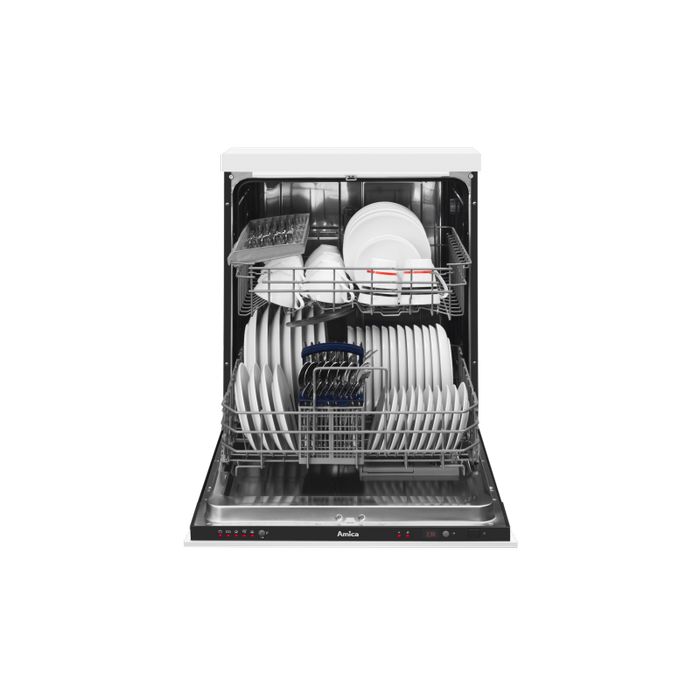 Amica Ugradbena perilica posuđa 60 cm Klasa energetske efikasnosti: A++ Klasa učinkovitosti sušenja: A Kapacitet: 12 Razina buke: 49 dB Potrošnja energije: 0.9 kWh Potrošnja vode: 11 l 5 programa pranja Intenzivni program 60 °C / Brzi program 40°C / Eco program 45°C / Normalni program 45 °C/Predpranje 12 min Potpuno integrirana upravljačka ploča / Odgoda starta: 1-24h / Svjetlosni indikator nedostatka sretstva za sjaj / Indikator nedostatka soli / Sistem sušenja vrućim zrakom / Aquastop zaštita od prelijevanja / Košara za pribor za jelo / Child lock/ pranje po zonama/ LED display Slika s prednjom frontom je simbolična, isporuka ne sadrži prednju masku