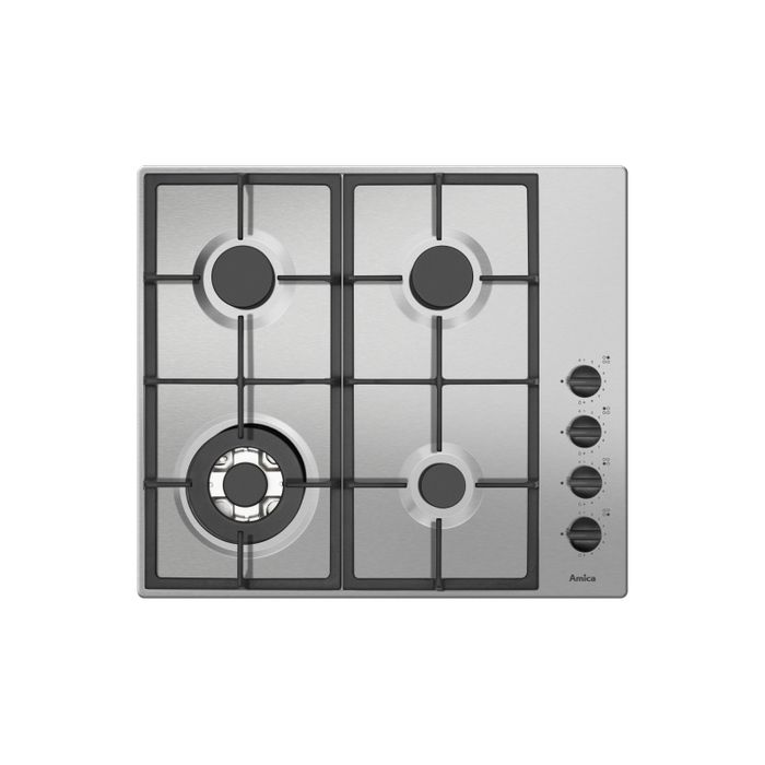 Gumb za automatsko paljenjeNema više spaljenih prstiju pri pokušaju paljenja sa šibicama ili uvijek neispravnim upaljačima na iskrenje. Zahvaljujući automatskom paljenju preko gumba, plamenik postaje iznimno lagan i praktičan. Sve možete učiniti s jednom rukom. Pritisnite i okrenite gumb kako biste upalili plamenik. Iskoristite toplinu i uživajte u praktičnosti Vaše kuhinje.Sigurnosni ventil plamenaMoglo bi biti opasno ako se plamenik slučajno ugasi. Međutim, ne i u aparatima Amica, koji su opremljeni posebnim ventilom koji isključuje opskrbu plinom. Sigurnost iznad svega!Nehrđajuća površinaZone zagrijavanjaPomoćni plamenik 1,0 kWStandardni plamenik 1,8 kW: 2Veliki plamenik 2,8 kWTehnički podaciVisina 5,2 cmŠirina 59 cmDubina 52 cmNeto težina 8,5 kgUkupna snaga 7,4 kWPovršina ploče za kuhanje InoksKontrole: Standardni upravljački gumbiBoja ploče za kuhanje InoxVrsta ploče za kuhanje: Plinski/a/oŠirina otvora 56 cmDubina otvora 49 cmBroj zona za zagrijavanje / plamenika 4 kom
