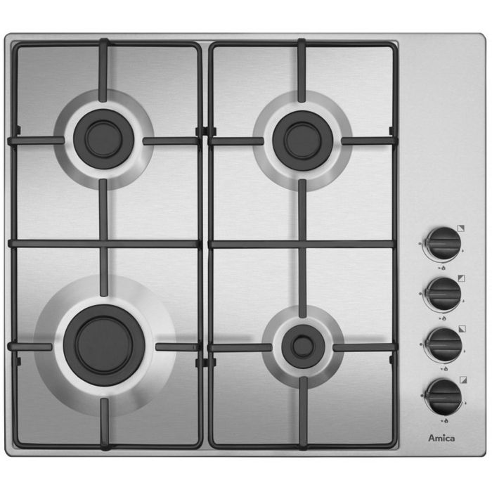 Gumb za automatsko paljenjeNema više spaljenih prstiju pri pokušaju paljenja sa šibicama ili uvijek neispravnim upaljačima na iskrenje. Zahvaljujući automatskom paljenju preko gumba, plamenik postaje iznimno lagan i praktičan. Sve možete učiniti s jednom rukom. Pritisnite i okrenite gumb kako biste upalili plamenik. Iskoristite toplinu i uživajte u praktičnosti Vaše kuhinje.Sigurnosni ventil plamenaMoglo bi biti opasno ako se plamenik slučajno ugasi. Međutim, ne i u aparatima Amica, koji su opremljeni posebnim ventilom koji isključuje opskrbu plinom. Sigurnost iznad svega!Nehrđajuća površinaZone zagrijavanjaPomoćni plamenik 1,0 kWStandardni plamenik 1,8 kW: 2Veliki plamenik 2,8 kWTehnički podaciVisina 4,3 cmŠirina 59 cmDubina 52 cmNeto težina 8,5 kgUkupna snaga 7,4 kWPovršina ploče za kuhanje InoksKontrole: Standardni upravljački gumbiBoja ploče za kuhanje InoxVrsta ploče za kuhanje: Plinski/a/oŠirina otvora 56 cmDubina otvora 49 cmBroj zona za zagrijavanje / plamenika 4 kom