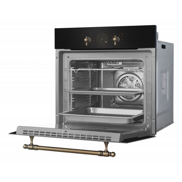 Parno čišćenjeCirkulacija vrućeg zrakaBrzo preliminarno zagrijavanjeTehnički podaciVisina 59,5 cmŠirina 59,5 cmDubina 57,5 cmRazred energetske učinkovitosti AKapacitet pećnice 65 lGornji grijač 900 WDonji grijač 1100 WPrstenasti grijač 2100 WNeto težina 35,6 kgUkupna snaga 3,6 kWŠirina otvora 56 cmDubina otvora 56 cmPotrošnja energije u konvencionalnom načinu rada 0,99 kWhPotrošnja energije u načinu rada s ventilatorom 0,78 kWhBoja : CrnaVisina otvora 59,5 cm