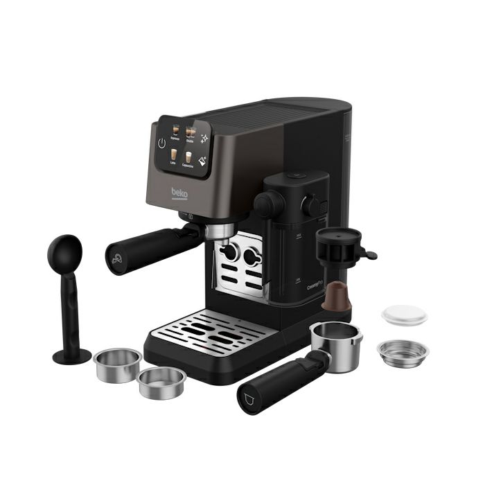 Beko CEP 5464 DX Espresso aparat Snaga: 1350 W Kapacitet rezervoara za vodu: 1,1 l Zaslon osjetljiv na dodir u boji Tlak: 20 bar Espresso Americano Cappuccino Café Latte Opcija pripreme kave u kapsulama Odabir veličine šalice Integrirani rezervoar za mlijeko: 0,3 l Indikator razine vode u rezervoaru za vodu Visina: 31 cm Širina: 20.5 cm Dubina: 42.5 cm Težina: 4.351 kg