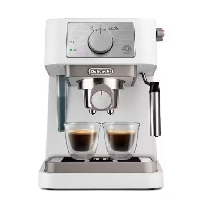 Tehničke informacije Dimenzije (šxdxv) (mm): 205 x 343 x 285 Težina (kg): 4.3 Maksimalna visina šalice (mm): 110 Tlak pumpe (bar): 15 Kapacitet spremnika za vodu (l): 1 Ulazna snaga (W): 1100 Nazivni napon / frekvencija (V~Hz): 220 – 240 V / 50 – 60 Hz Espresso: Da Boja: bijela Završna obrada: Stainless steel details Materijal glavnog dijela: Plastic Držač za čašu: Da Sustav za mlijeko: Cappuccino sistem Automatsko isključivanje: Da Sustav grijanja: Bojler od nehrđajućeg čelika Uklonjiv spremnik za vodu: Da Uklonjiv podložak za kapanje: Da Indikator razine vode: Da Kompatibilno za kapsule ESE: Da Broj filtera: 2 Kontrole: Gumb za odabir Prešanje kave: Spoon / Tamper