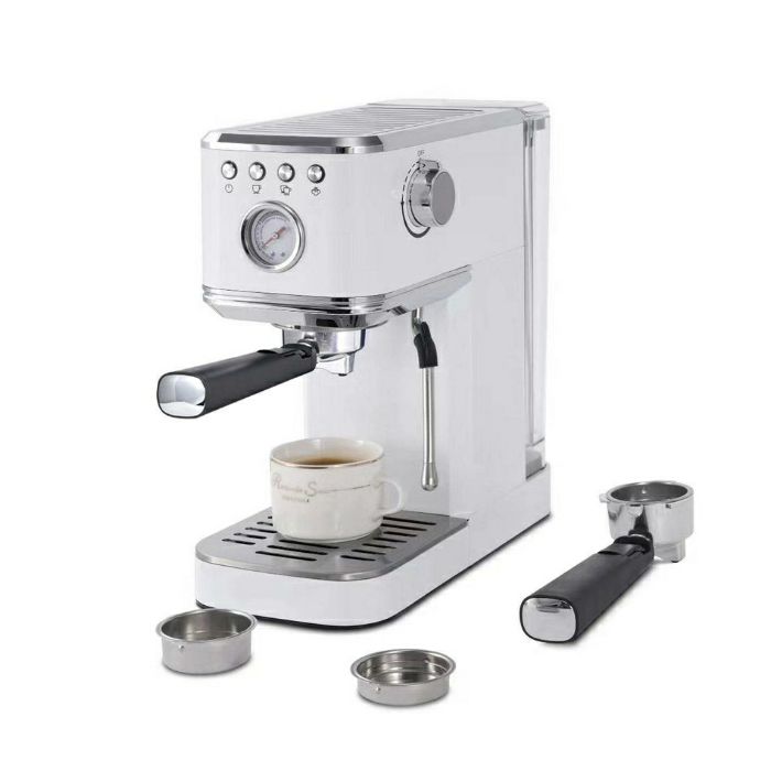 Aparat za kafu Elit Perfetto 2u1 ECM-24 Savršena šoljica kafe svaki put Doživite užitak vrhunske kafe uz Elit Perfetto 2u1 Espresso aparat za kafu, idealan za sve ljubitelje kafe koji traže kombinaciju stila i svestranosti u jednom uređaju. Dvojna funkcionalnost Elit Perfetto 2u1 aparat za kafu omogućava vam pripremu omiljenih napitaka s mljevenom kafom ili Nespresso kompatibilnim kapsulama, pružajući vam slobodu izbora okusa i načina pripreme, bilo da preferirate espresso ili dužu kafu. Jednostavnost upotrebe Poklopac aparata ima funkciju grijanja šoljice, koja osigurava da vaša šoljica ostane topla dok se kafa priprema. Odvojivi prozirni spremnik za vodu kapaciteta 1,2(l) omogućava lako punjenje i praćenje razine vode, dok pumpa snage 20 bara osigurava idealan pritisak za bogat okus i savršenu kremu. Savršena pjena Ugrađena funkcija pjene omogućava vam da pripremite napitke s bogatom, kremastom mliječnom pjenom. Aparat je također opremljen sigurnosnim značajkama poput zaštite od pregrijavanja i previsokog pritiska, čime se osigurava dugovječnost i pouzdanost uređaja. Jednostavno čišćenje Odvojiva posuda za sakupljanje tekućine olakšava održavanje aparata, čineći ga izuzetno praktičnim za svakodnevnu upotrebu. Uz mogućnost pripreme espressa, obične kafe, pare i produžene kafe, ovaj aparat zadovoljit će i najzahtjevnije kafoljupce. Tehničke specifikacije 2u1 Espresso aparat za kafu Snaga 1350W / 220-240V, 50Hz, Pritisak pumpe: 20bara Termoblok tehnologija NTC i PID kontrola temperature Metalno kućište u sjajnoj bijeloj boji Gornji poklopac s funkcijom grijanja šoljice 1,2L odvojivi prozirni spremnik za vodu S funkcijom pjene Zaštita od pregrijavanja i previsokog pritiska Odvojiva posuda za sakupljanje tekućine za jednostavno čišćenje Vrste napitaka: Espresso, Kafa, Para, Produžena kafa Mogućnost korištenja NESPRESSO kapsula i korištenja mljevene kafe