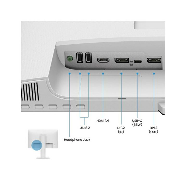 veličina zaslona: 60.4 (23.8'') rezolucija: 1920 x 1080 vrsta ekrana: IPS priključak: HDMI, DisplayPort, USB-C (65W), DP izlaz, USB Type-A vrijeme odziva: 5 ms svjetlina: 250 cd/m2 stalak: podesiv po visini, rotirajući, sklopivi zvučnici: 2x 2W mikrofon: ugrađen (funkcija "Noise-cancellation")