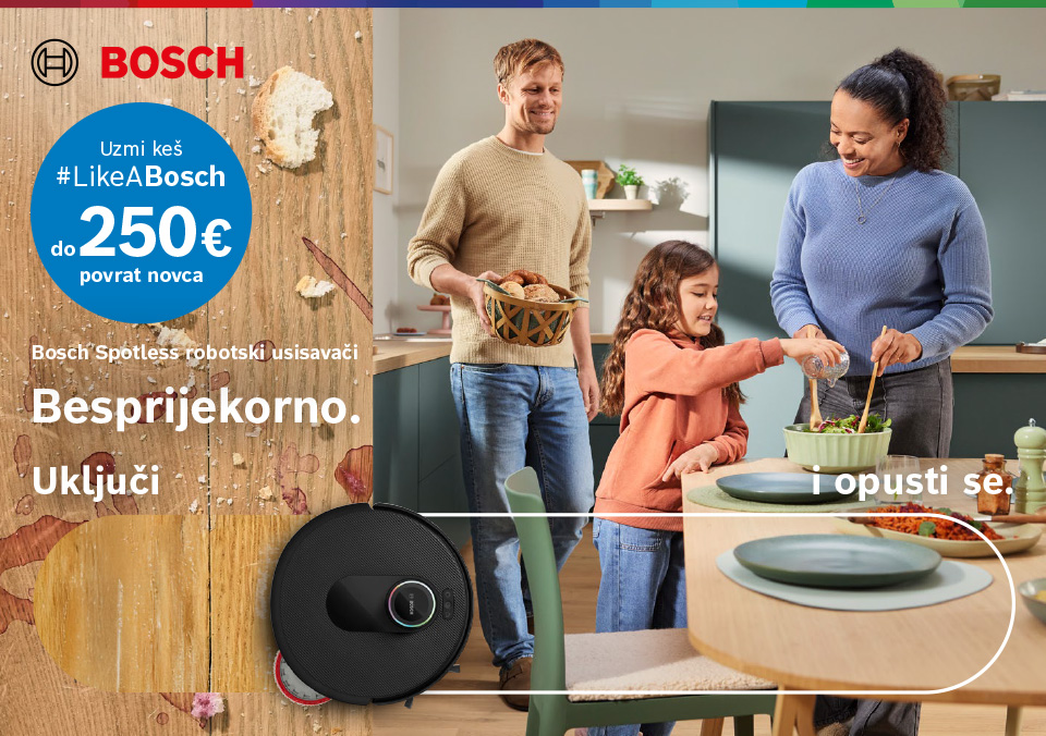 Uz 2 godine tvorničkog jamstva, krajnji kupac može prijavom na MyBosch portalu ostvariti dodatno 10-godišnje jamstvo na motor za Bosch robotske usisavače i mopove iz Spotless serije kupljene od 01.09.2025., uz rok prijave 6 mjeseci od dana kupnje.