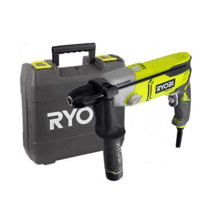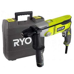 Ryobi RPD1010K Udarna bušilica: 1010 W Dvije brzine 0-3200 okr/min Brzostezna glava 13 mm Bušenje u drvu 50 mm, željezu 22 mm, betonu 26 mm Graničnik dubine Kofer