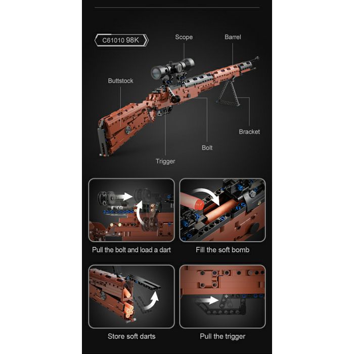 Predstavljamo mušketu CaDA C61010W - Karabiner 98K, vrlo detaljan i funkcionalan set blokova koji rekreira legendarnu pušku iz Drugog svjetskog rata. Dizajniran za ljubitelje vojne povijesti, kolekcionare i ljubitelje sklapanja, ovaj model kombinira realističan dizajn s interaktivnim značajkama.