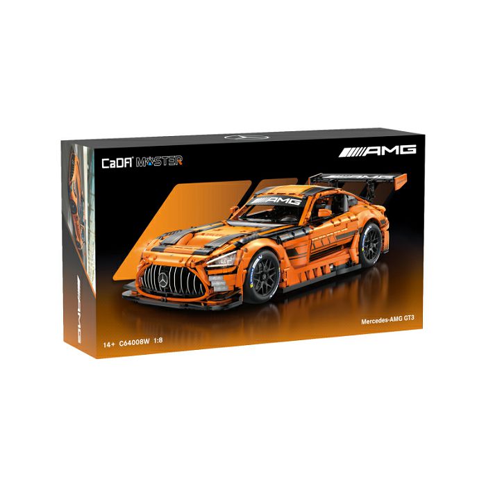 CaDA Master 1:8 Mercedes-AMG GT3 (C64008W) Ikonski trkaći model Mercedes-AMG GT3, službeno licenciran i dizajniran kao vrhunski CaDA Master komplet za gradnju u impresivnom mjerilu 1:8. Ovaj detaljni model za reprodukciju savršen je izbor za iskusne graditelje, automobilske entuzijaste i kolekcionare koji traže složeno i realistično iskustvo gradnje. Značajke: Službeno licenciran od strane Mercedes-AMG-a za autentičan izgled i detalje Pneumatski sustav podizanja – jedinstvena značajka za realističnu simulaciju zaustavljanja u boksu Pravi 8-stupanjski mjenjač i responzivno upravljanje Funkcionalni ovjes s podesivim amortizerima Otvarajuća vrata i poklopac motora Detaljne unutarnje i vanjske aerodinamičke linije Uključeni LED kompleti rasvjete s USB napajanjem Svi detalji su otisnuti, bez naljepnica – za vrhunski izgled Tehničke specifikacije: Model: C64008W Težina: Visoka Broj dijelova: 5466 Mjerilo: 1:8 Veličina modela: cca. 59 × 25 × 17 cm Veličina kutije: cca. 66,7 × 17,8 × 37,3 cm Posebne značajke: Pneumatska funkcija zaustavljanja u boksu koja omogućuje podizanje modela i simulaciju promjene kotača Mogućnost gašenja motora i pristupa unutarnjim elementima Visokokvalitetno pakiranje i ilustrirane upute za sastavljanje Uključeni pribor i dodatna oprema za maksimalno realistično iskustvo