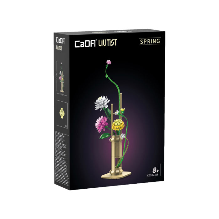 Tehničke specifikacije: Model: C59023W – Orijentalna cvjetna umjetnost: Proljeće Serija: CaDA Kreativna serija Teškoća: Niska - pogodno za graditelje svih uzrasta Broj dijelova: 613 Mjerilo / veličina modela: cca. 18,4 × 18,4 × 53,6 cm (visina) Dimenzije kutije: cca. 35 × 24,4 × 8,3 cm Prikladno za: dob 8+