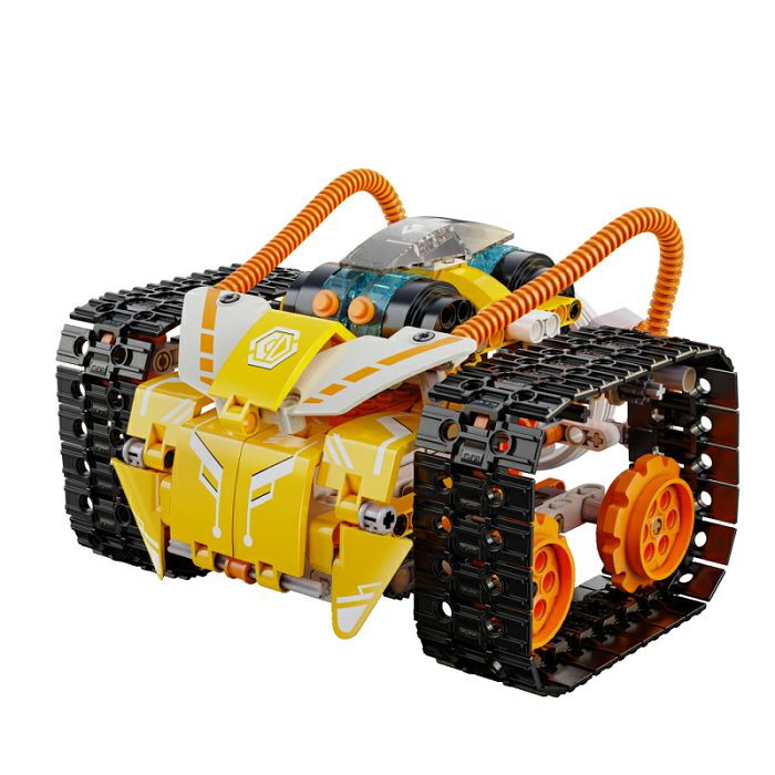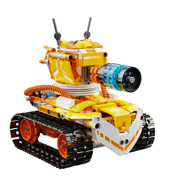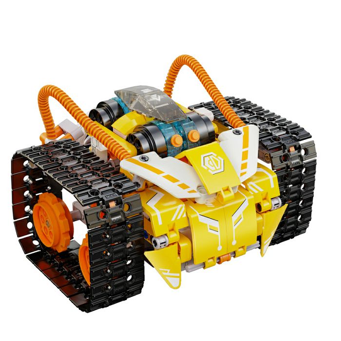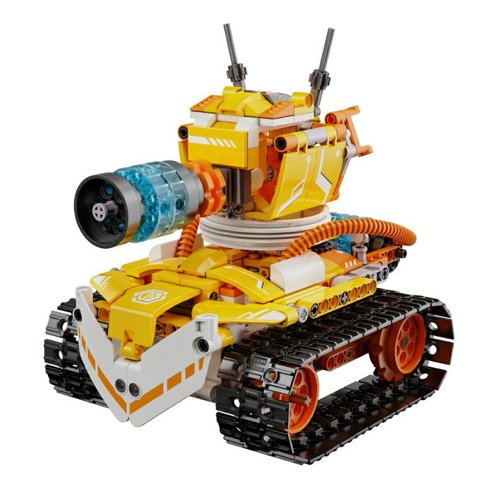 Izgradite i upravljajte 3 različita modela iz jednog kompleta: robota, tenka ili transportnog vozila. Dvostruki način upravljanja – klasični 2,4 GHz daljinski upravljač ili mobilna aplikacija. U konfiguraciji robota, daljinski upravljač omogućuje vam vožnju naprijed/natrag, lijevo/desno, buđenje glave i rotaciju "ventilatora" na ruci za 360°. Komplet uključuje 3,7 V Li-ionsku bateriju za model; Daljinski upravljač zahtijeva 2× AA (nisu uključene).