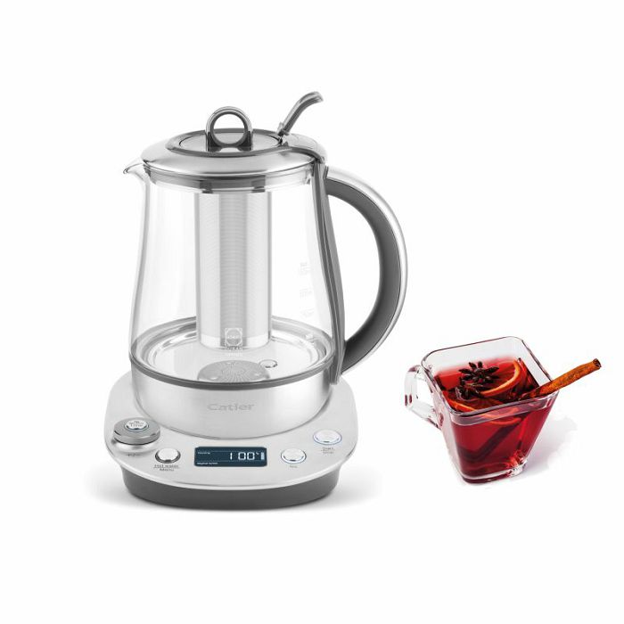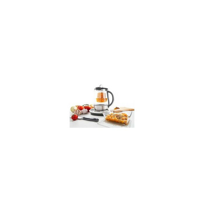 Volumen 1,2 l Mogućnost kuhanja vode i kuhanja čaja Posebni programi za piće i hranu Duran Schott stakleni čajnik 500 ml Staklena posuda za pripremu hrane Oznaka razine vode na staklu Veliki zaslon s pozadinskim osvjetljenjem Dosegnuta postavljena temperatura vode / zvučni signal kuhanja Odjeljak kabela za napajanje na donjoj strani baze Elektronski upravljani kotao za brzo kuhanje 5 programskih postavki za različite vrste čaja - zelene, crne, biljne, oolong i bijele 5 posebnih programa - ledeni čaj, kuhano vino, jabukovača, chutney, jogurt Cjedilo za čaj, žlice od nehrđajućeg čelika, pladanj za kapanje Vodite kroz svijet čajeve, toplih napitaka i hrane kako biste dobili najviše iz kotlića Držite toplo 30 minuta Automatsko isključivanje i zaštita od pregrijavanja kada se uključi bez vode Set za kuhanje - posuda za staklenu posudu Središnji priključak za 360 ° Težina bazne jedinice: 870 g Napon i frekvencija: 220 - 240 V, 50 Hz Ulazna snaga: 1.200 - 1.400 W