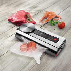 Catler zavarivač namijenjen je svima onima koji ne samo da uživaju puno kuhanja već i žele sigurno čuvati hranu duže.Sa vakuumom zapečaćenom hranom također ćete imati više prostora u hladnjaku ili zamrzivaču. Da ne spominjemo higijenu i čistoću. Ali što je najvažnije, zadržat ćete punu aromu, okus i hranjive tvari bez sušenja ili oksidacije. Možete vakumirati kod kuće, tijekom putovanja sa nastavkom za napajanje u autu ... To je pametan način širenja svježine i prehrane vaše hrane. Također može značajno smanjiti gubitke. Izmjenjiva kuhinjska vagaVakuumska pumpa s utikačem za vađenje zraka iz boceVeliki LCD zaslonMože se koristiti i izvan kuće - u automobilu, kamp-kućici, na brodu 2 brzine ekstrakcije zraka - normalno / nježno2 načina ekstrakcije zraka - suha / vlažna hranaNiska razina buke tijekom vađenja zrakaOdvojivi kabel za napajanjeRezni nožMogućnost pohrane u okomitom položaju Podržava napajanja od 12 V / 220 V Vakuumska funkcija ekstrakcije zraka u boci - vino, ulje, ocat ...Možete vakuumirati brtvljenje ili jednostavno pakirati higijenskiOdstranjiva kuhinjska vaga koja se može skladištiti unutar uređajaKuhinjska vaga se može koristiti čak i tijekom nestanka struje (2x AA baterije)Elektromagnetska bravica Koristite ga za mariniranje Napon i frekvencija: 100-240 V ~ 50-60 HzUlaz snage: 120 WIzvor napajanja: 12 V / 220 V