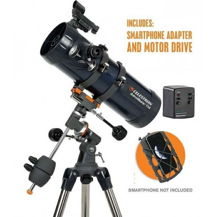 Celestron PowerSeeker 114EQ ima Newtonov reflektor promjera 114 mm, žarišnu duljinu 900 mm, 3x Barlow leću i zumove s uključenim okularima (45x – 20 mm, 225x – 4 mm). Maksimalno upotrebljivo povećanje je 269x. Teleskop se lako postavlja bez ikakvih alata.