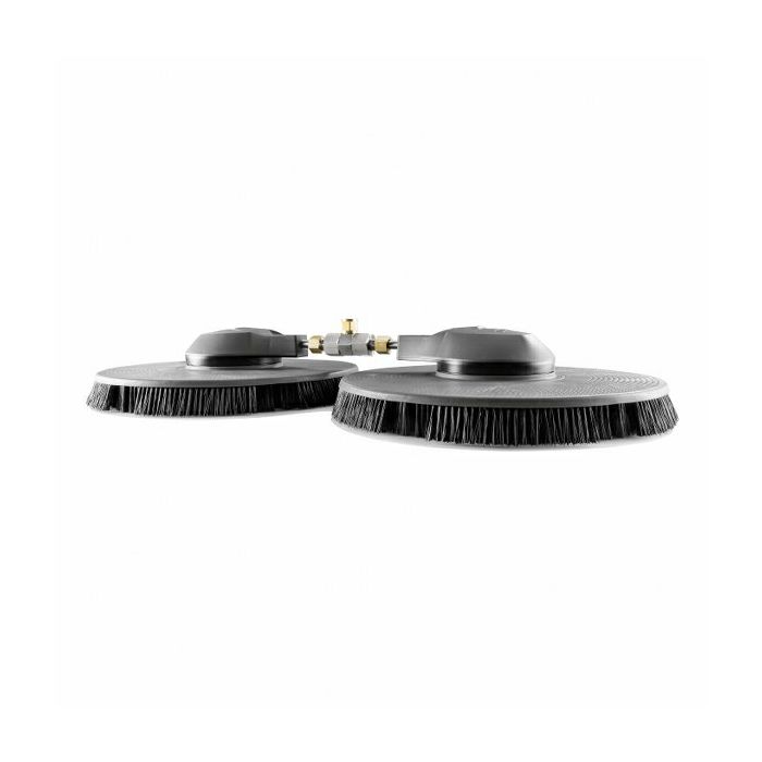 Sunčani pogledi! Glava četke na vodeni pogon iSolar 800 radne širine 800 mm prikladna je za visokotlačne čistače s protokom vode od 700 do 1000 l/h. iSolar 800 radi s dvije rotacijske četke koje se okreću u suprotnim smjerovima i koristi se za čišćenje PV sustava. Rotirajuće četke, koje se okreću u suprotnim smjerovima, poništavaju sve poprečne sile i tako osiguravaju optimalno korištenje. Rad također olakšava fleksibilni fleksibilni zglob na konektoru glave četke. Osigurava da čekinje uvijek leže ravno na površini i tako omogućava ujednačene rezultate čišćenja. Glava četke posebno uvjerava svojim izuzetno velikim površinskim kapacitetom, zbog čega je prikladna za čišćenje velikih sustava, na primjer na krovovima staja.
