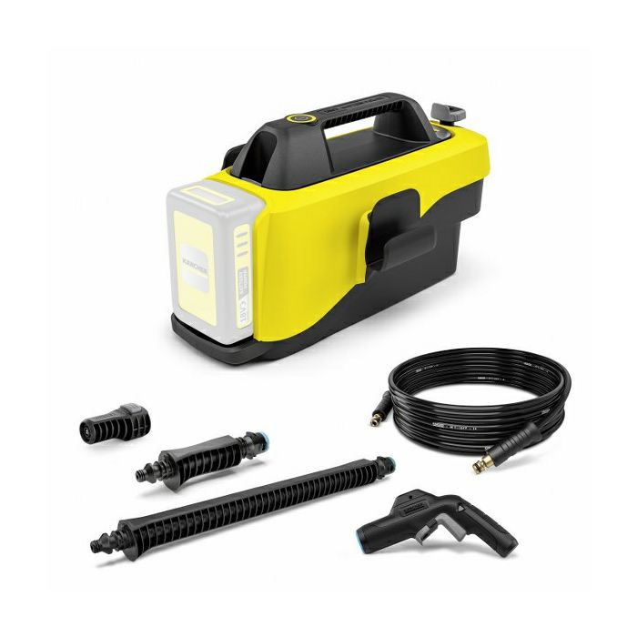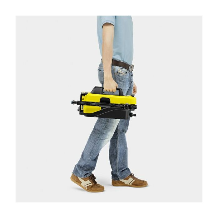 ZNAČAJKE I PREDNOSTI Mobilno čišćenje Neovisan o izvoru napajanja zahvaljujući baterijskoj tehnologiji. Čišćenje je moguće i bez priključka za vodu, zahvaljujući usisnom crijevu ili kolicima od 12 litara za spremnik vode (oboje dostupno odvojeno). Praktična pohrana dodataka na uređaju Cijev, pištolj za okidanje i cijev za prskanje mogu se jednostavno i sigurno pohraniti na uređaj radi uštede prostora. Pribor vam je uvijek pri ruci, čak i kada ste u pokretu. Kolica za vodu od 12 litara dostupna su kao dodatna oprema. Aplikacija Dom i vrt S aplikacijom Kärcher Home & Garden postat ćete stručnjak za čišćenje. Učinkovit i idealno podešen srednji tlak Tlak od 24 bara (maks.) za učinkovito čišćenje. Nježno, sigurno i pouzdano čisti čak i osjetljive površine. Fleksibilna cijev Jednostavno rukovanje crijevom. Izmjenjiva baterija 18 V Kärcher Battery Power (nije standardno uključena u opseg isporuke) Tehnologija u stvarnom vremenu s LCD zaslonom na bateriji pokazuje preostalo vrijeme rada, trajanje baterije i kapacitet baterije. Trajnost i učinkovitost osiguravaju litij-ionske ćelije. Kompatibilan sa svim uređajima Kärcher platforme Battery Power 18 V.
