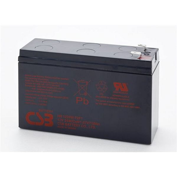 Baterija za slijedeće modele UPS-ova: BE400-GR x1kom. HR 1224WF2F1 is specially designed for high efficient discharge application. Its characteristics are small volume, light weight and high discharge efficiency. It can be used for more than 260 cycles at 100% discharge in cycle service, up to 5 yeas in standby service. http://www.csb-battery.com/english/01_product/02_detail.php?fid=7 &pid=27 Dimenzije i masa: Dimenzije H [mm]: 0